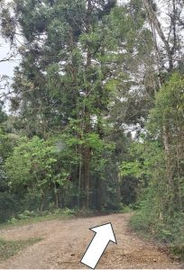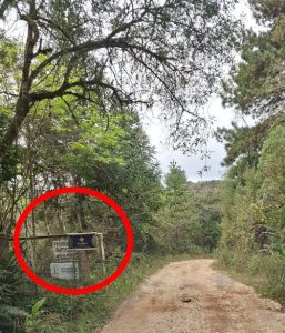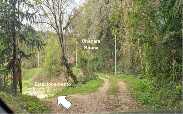 4) Siga em frente mais um pouco, e após uma subidinha, há uma nova bifurcação. À esquerda fica a área de estacionamento. Do estacionamento são menos de 50 metros até a entrada do Mauna Floresta.