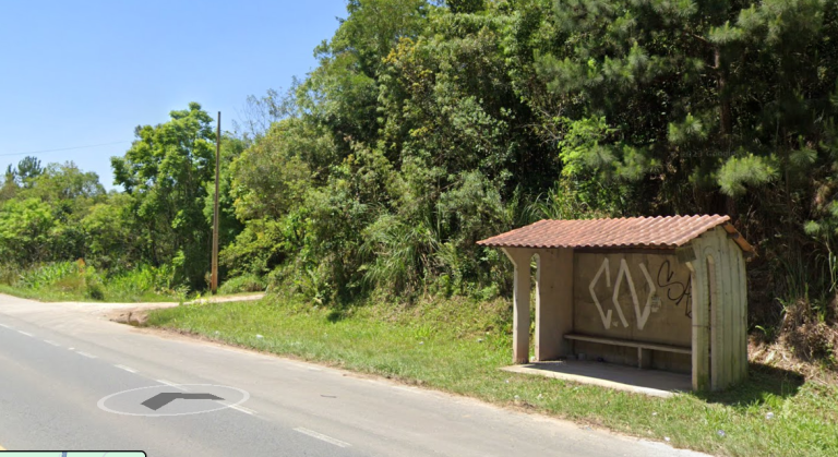 O ponto de ônibus fica logo depois da curva então fique atento às placas de quilometragem.